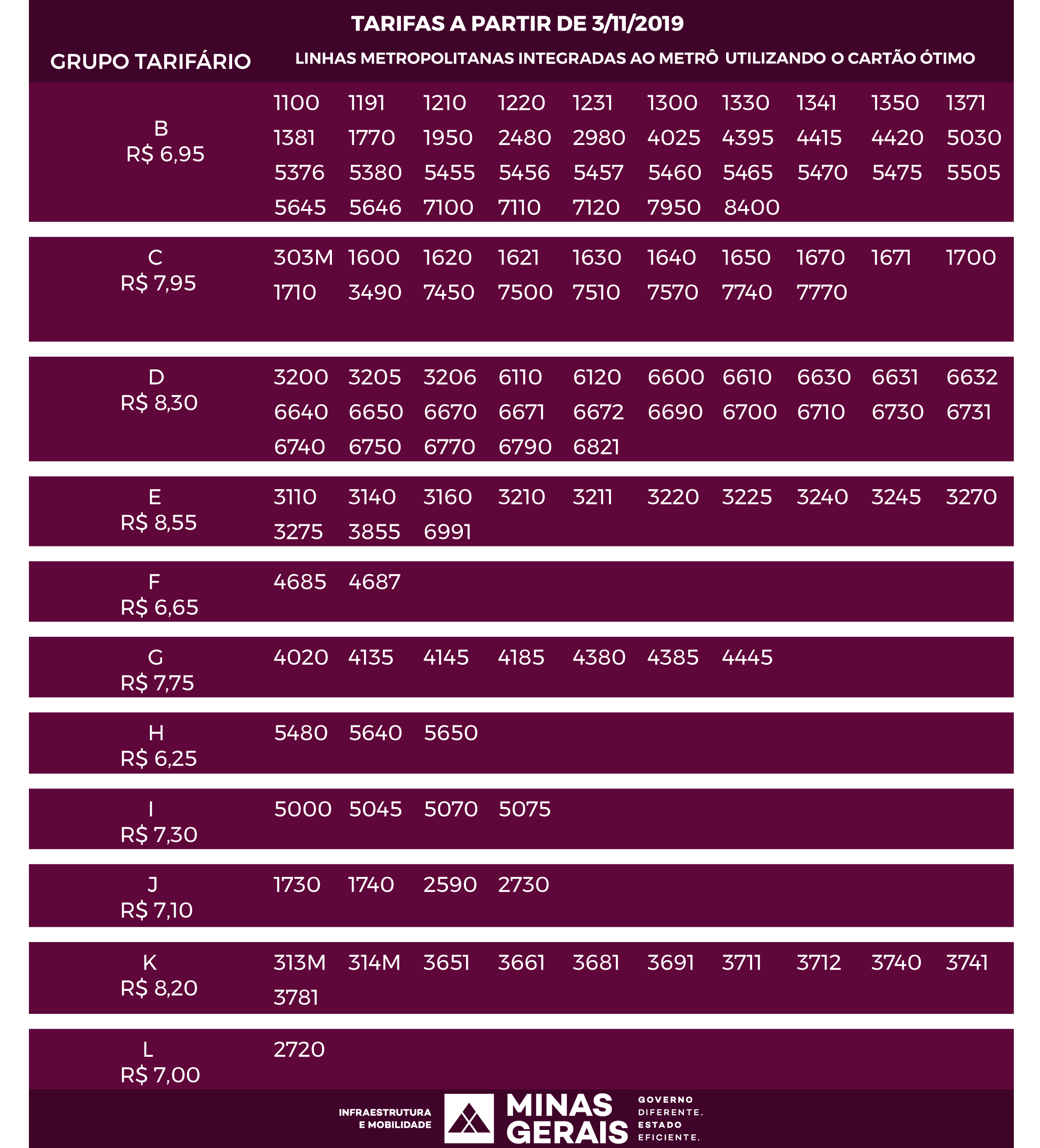 A partir de zero hora de domingo (3/11/2019), a Companhia Brasileira de Trens Urbanos (CBTU) vai implementar mais uma etapa do reequilíbrio tarifário unitário do metrô de Belo Horizonte. Por este motivo, a Secretaria de Estado de Infraestrutura e Mobilidade (Seinfra) informa que as tarifas de integração das linhas do Sistema de Transporte Metropolitano também serão readequadas. A diferença de R$ 0,25 do reajuste será totalmente repassada à CBTU.