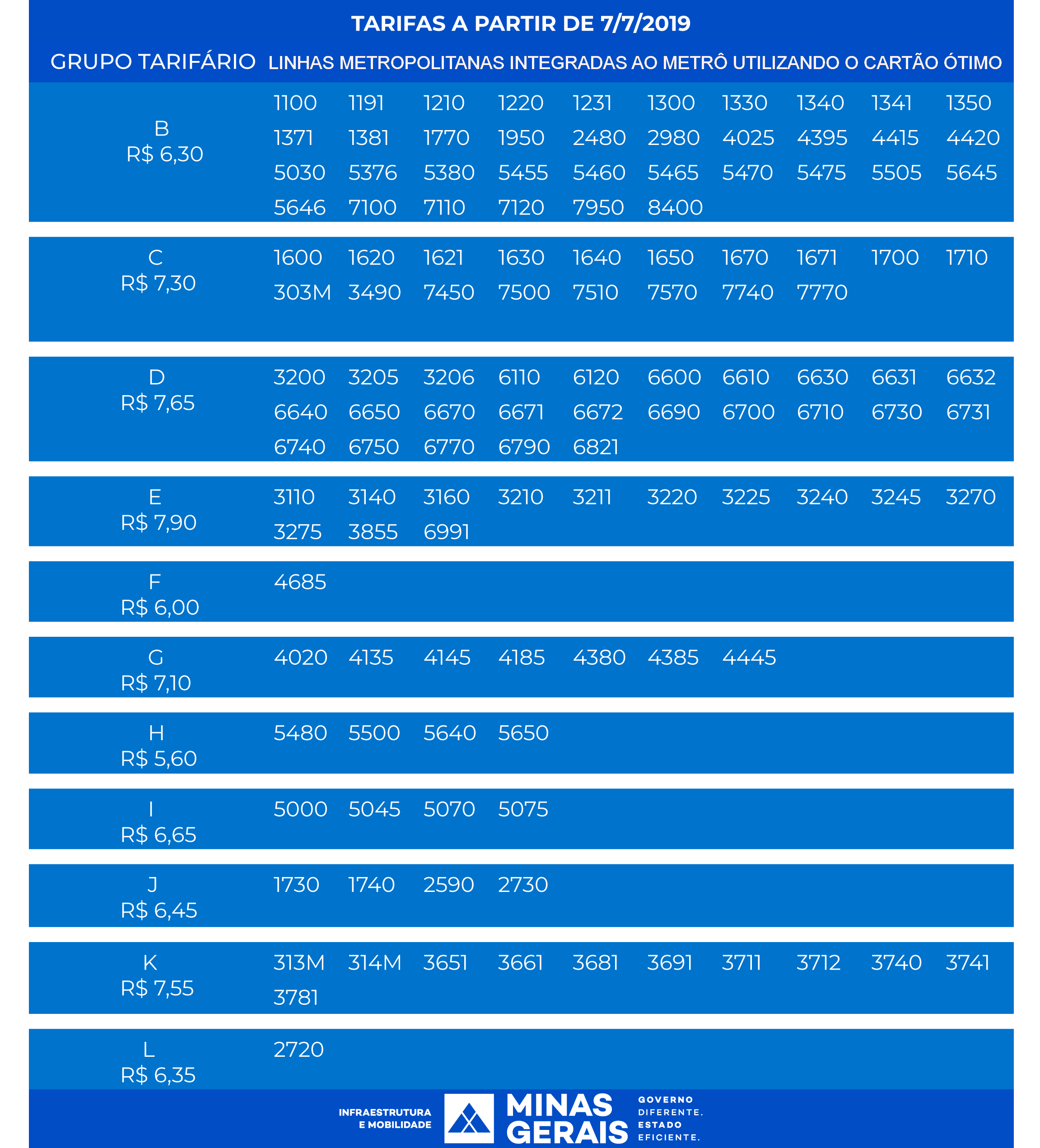 A partir de zero hora deste domingo (7/7/2019), a Companhia Brasileira de Trens Urbanos (CBTU) vai implementar mais uma etapa do reequilíbrio tarifário unitário do metrô de Belo Horizonte. Por este motivo, a Secretaria de Estado de Infraestrutura e Mobilidade (Seinfra) informa que as tarifas de integração das linhas do Sistema de Transporte Metropolitano também serão readequadas. A diferença de R$ 0,45 do reajuste será totalmente repassada à CBTU.